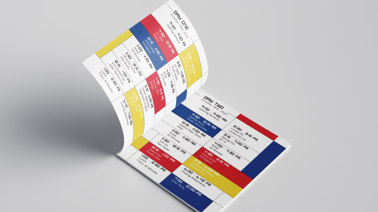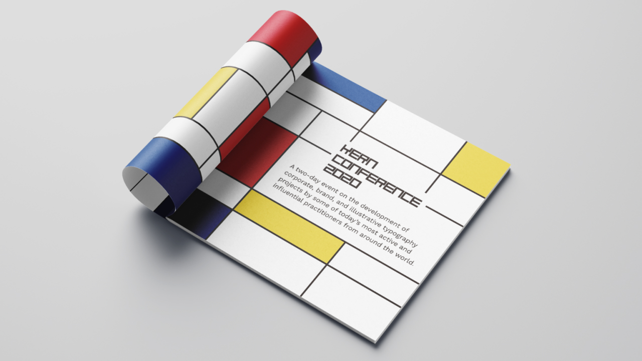 A conference book and an attendee badge were designed for the Kern Conference, which took place in Leiden, Netherlands. Pulling inspiration from De Stijl, a Dutch art movement founded in 1917 in Leiden. The cover is Leiden Central railway station in a De Stijl style.